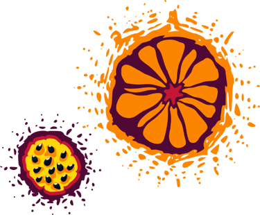 Les teintes chaudes ; orange, jaune et rouge rosé, évoquent directement la boisson, sa couleur et ses ingrédients.