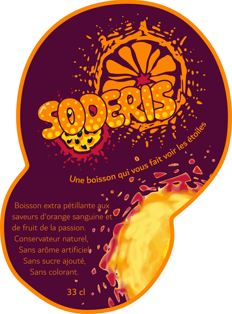 SODERIS est un projet fictif d'une nouvelle marque de boisson fruitée et pétillante dont les ingrédients principaux sont l'orange et le fruit de la passion.