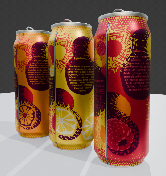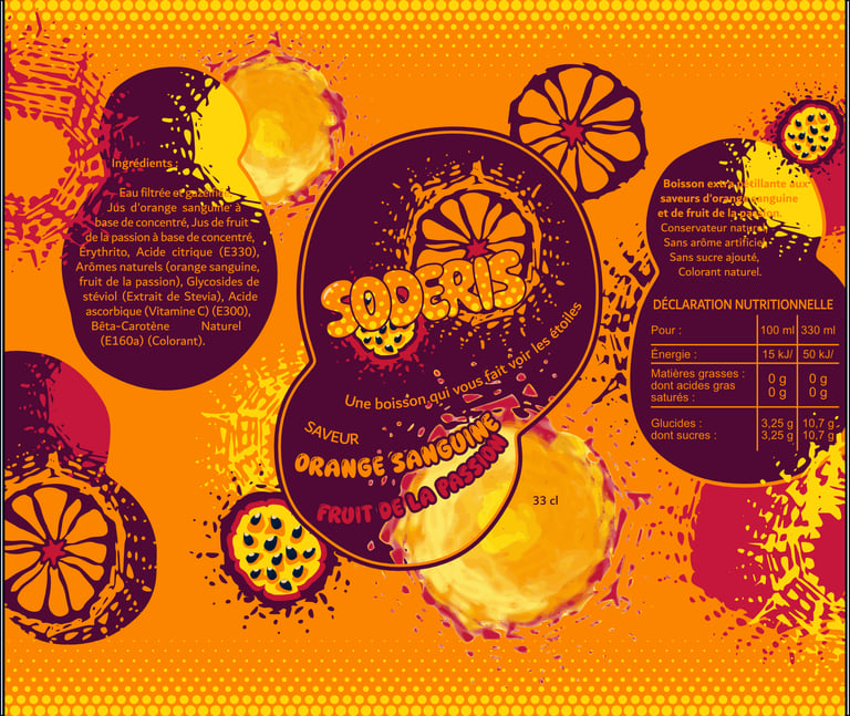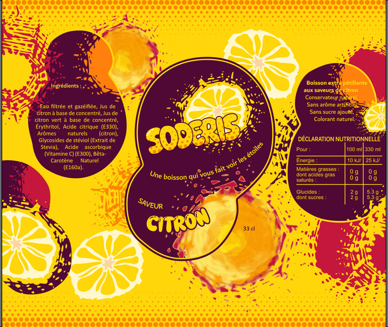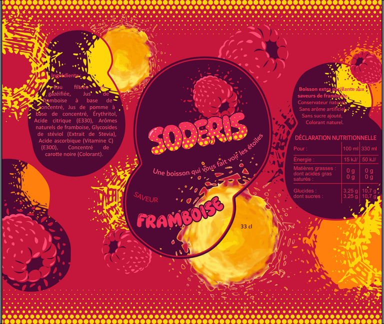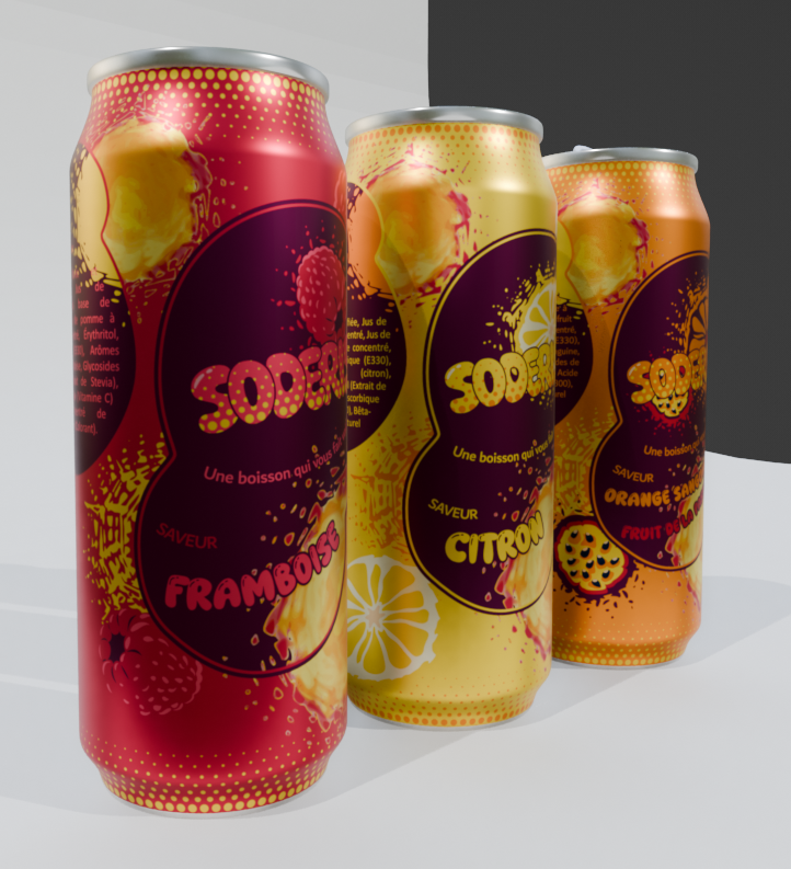 Découvrez le format canette de ma boisson fictive SODERIS et les deux nouvelles saveurs Framboise et Citron.